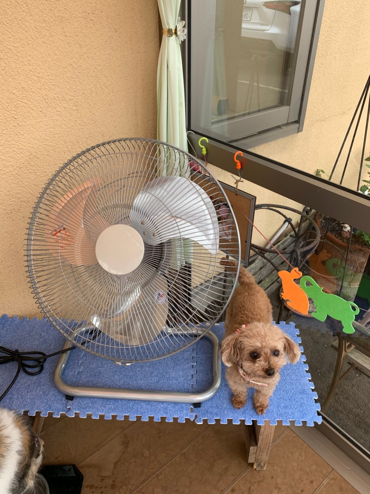 犬達にとっても夏は辛い季節ですが、この夏からセラピールームでは 感染予防の観点も含めて巨大扇風機が登場しました。クーラー+換気+巨大扇風機、の3本立てでコロナウイルスに立ち向かっていますので是非遊びにいらして下さい。犬達も扇風機前の特等席がお気に入りのようです。人も犬も健康第一で乗り切りましょう(*^o^*)