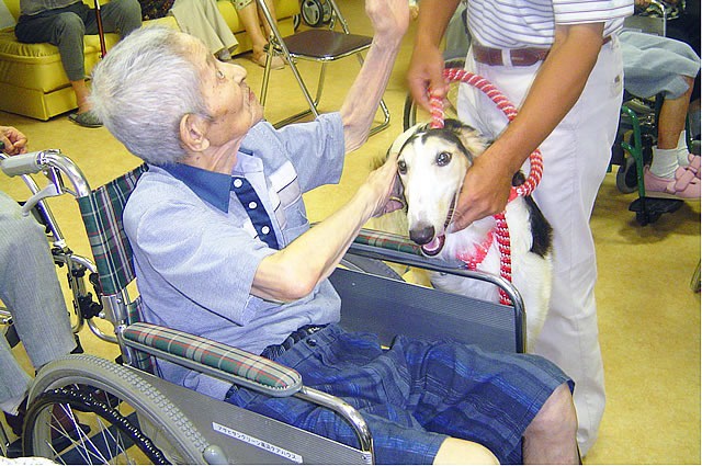このたびお誕生日を迎えられましたSさんはとても動物好きで、92回目のお誕生日のお祝いに是非犬との触れ合いをプレゼントしたい、との施設職員様からのご依頼で今回の訪問が実現しました。