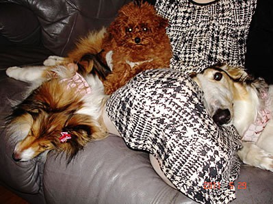 さて、長旅に耐え(三島市にある日本アニマルセラピー協会)リボンがやって来た我が家には先住犬が2頭もいます。その日から熾烈な人間関係?ならぬ犬関係が勃発しました(笑)。おもちゃもおやつも、お水までみんなそれぞれ他犬の持っている物がうらやましくて仕方ありません。取ったり取られたり、吠えたり吠えられたりと、とても賑やかです。ちびちゃんは遊びたいばっかりであまりにしつこくお姉ちゃんたちにじゃれていくとしまいには叱られています。寝ているパールの足裏をベロベロしたり、カノンの鼻先に平気でお尻をおいたり、傍若無人の珍業ぶりです。先住犬と言ってもまだ3歳と、1歳半になったところですので、2頭とも甘えたい気持ちはたくさん残っていますが、新米赤ちゃんのためには我慢もしなくてはなりません。お気に入りのベッドも取られてしまいました。