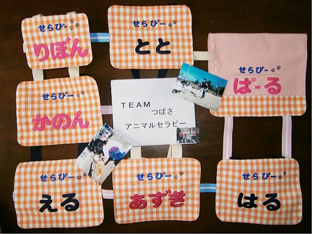 この度、仲良くして下さっているセラピストさんが、セラピー犬用のゼッケンを7頭分手作りして下さいました。かわいらしさの中にも、日々癒しを提供するセラピー犬たちの誇りが感じられるすてきなゼッケンです。皆さまの元へおじゃました際には、セラピー犬たちの優しく真っ直ぐな”貴方への思い”を受け取って頂けるとうれしいです。