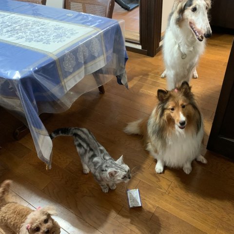 今年は初夏から徐々にご飯が食べられなくなりいつもの半量が精一杯‥、リボンやテレサにお裾分けをしてずいぶん喜ばれていました。少しでもパールの食が進むようにと半生のフードをブレンドしてこしらえた特別食で食欲が戻ってきたのもつかの間、今度は大好きなお散歩に行けなくなりました。